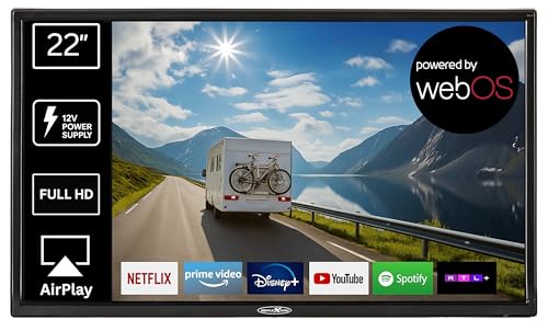 - REFLEXION TV LEDW22iSB+ Smart TV 22 Zoll für Wohnmobile und Wohnwagen 12V KFZ Adapter mit Soundbar Full HD Auflösung HDMI, WLAN, Bluetooth erschütterungsfest, schwarz